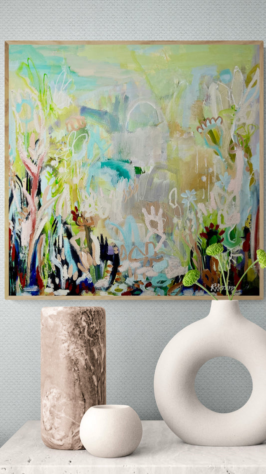 "Rachel Kierann’s art is a vibrant celebration of play and expression, bursting with creativity and life. Her mixed media pieces are not just art - they are experiences that infuse homes with beauty and joy. Each work invites viewers to explore and celebrate the spontaneity and wonder of artistic expression. Rachel’s passion for creating pieces that captivate and inspire is palpable, making her art a perfect addition for anyone looking to add a touch of magic to their space." - Ros Gervey