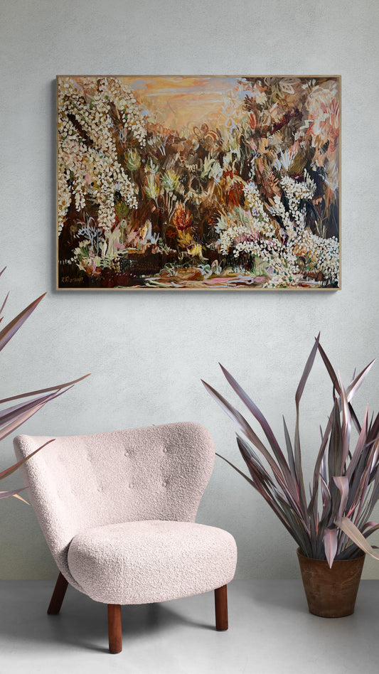 "Rachel Kierann’s art is a vibrant celebration of play and expression, bursting with creativity and life. Her mixed media pieces are not just art - they are experiences that infuse homes with beauty and joy. Each work invites viewers to explore and celebrate the spontaneity and wonder of artistic expression. Rachel’s passion for creating pieces that captivate and inspire is palpable, making her art a perfect addition for anyone looking to add a touch of magic to their space." - Ros Gervey